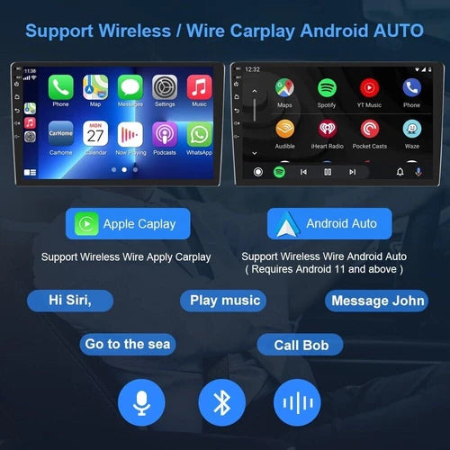 ●Wireless Carplay: You can choose wired connection or wireless connection to carplay, connect to Apple mobile phone, access mobile phone address book, mail, notification, map navigation, music, video and other information, and realize voice control.